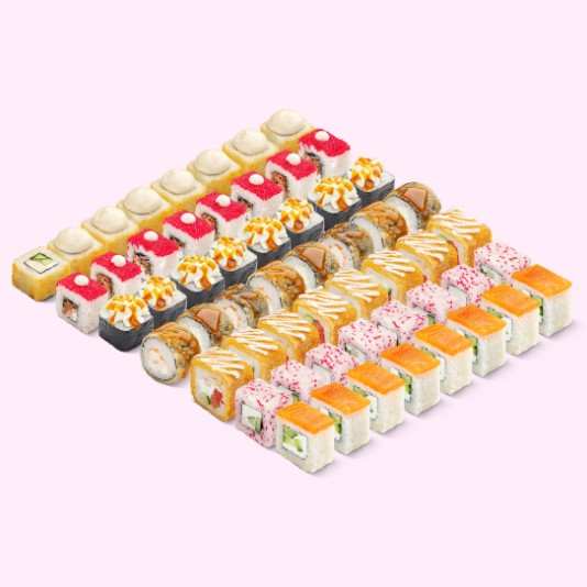 Филадельфия чили-ананас, Филадельфия с луком, Цезарь темпура, Том ям.