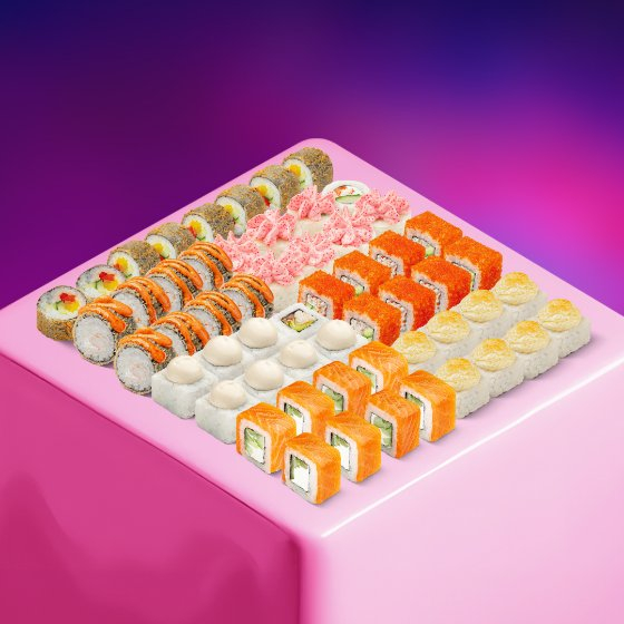 Сет для горячей вечеринки: рыбы и морепродуктов хватит на пятерых.Состав: Запечённая филадельфия с лососем, Запечённый с креветкой и угрём, Запечённая филадельфия с лососем и крабом, Веган-микс