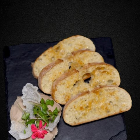 Утиный паштет с гель-соусом из вишни и чиабаттой