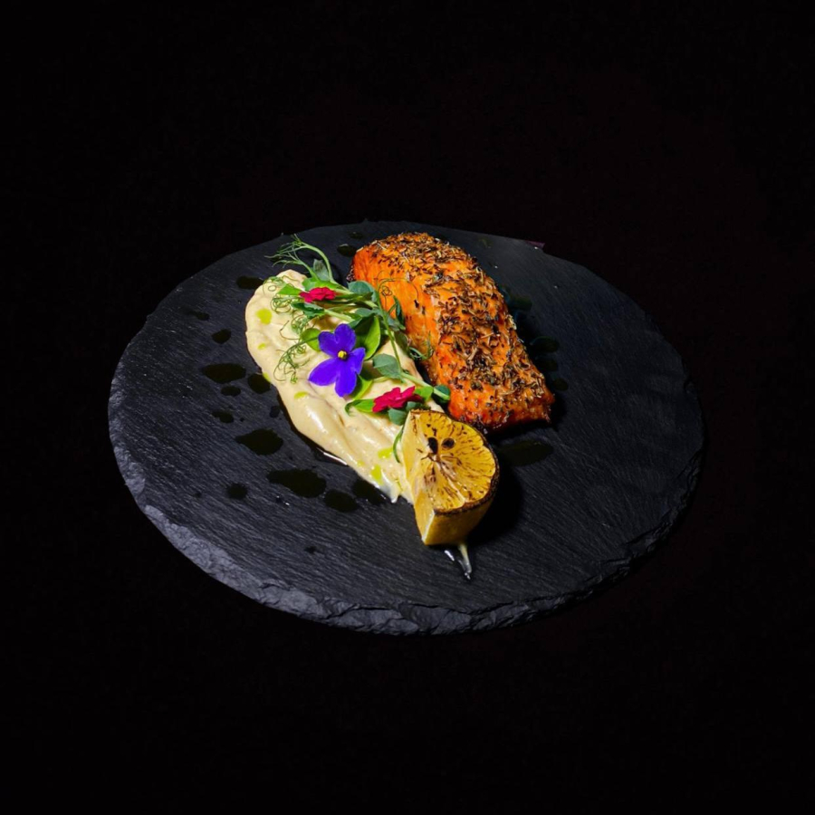 Кальмар, картофель, мускатный орех, масло сливочное, чеснок, сливки, соус табаско.