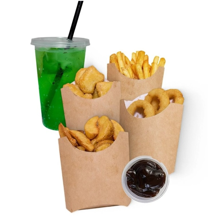 Лимонад, картофель фри, наггетсы, луковые колечки, картофельные дольки, соус.