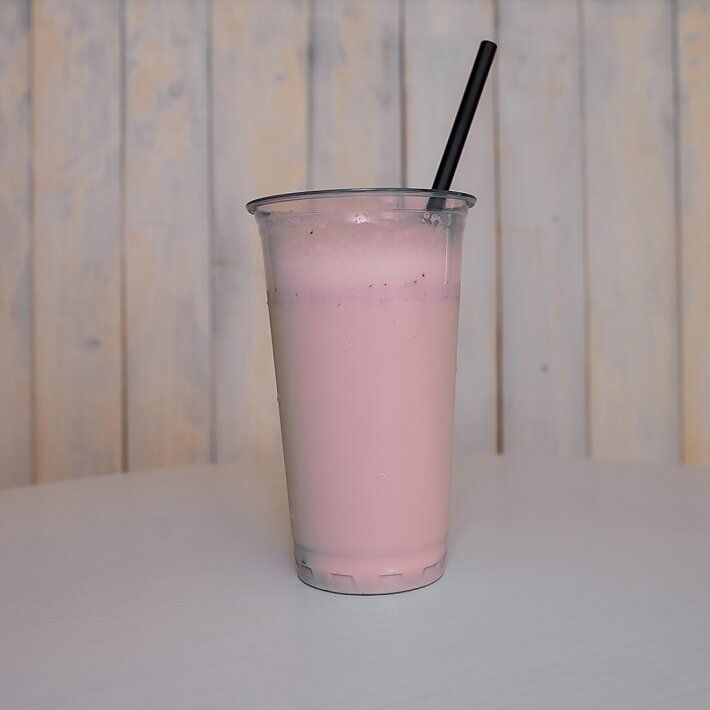 Молоко, мороженое, сироп Клубника, клубника.