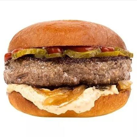 Заказать Булочка, кетчуп, маринованные огурцы, лук жареный, соус горчичный, котлета говяжья.