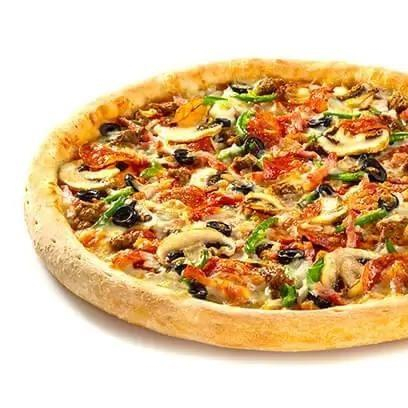 Пепперони, свинина, моцарелла, орегано, шампиньоны, маслины, фирменный томатный соус.