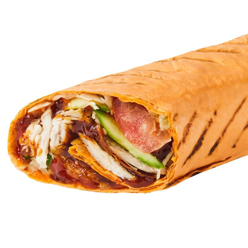 Заказать Курица, лаваш, соленый огурец, томаты, капуста, лук красный салатный, оригинальный соус на основе домашнего майонеза, чеснока, дижонской горчицы и кефира, соус барбекю.