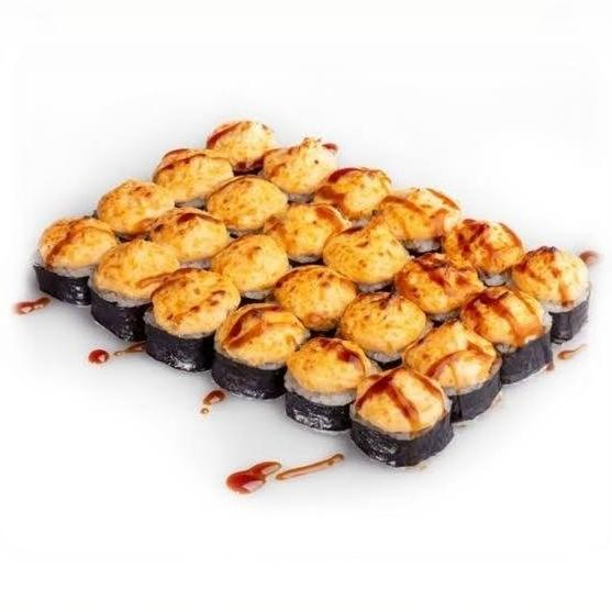 Заказать Мини ролл Королевская креветка, мини ролл Лосось, мини ролл Мидия, мини ролл Снежный краб, мини ролл Огурец, мини ролл Курочка, мини ролл кремчиз. Запеченные под фирменным соусом с сыром Моцарелла и полито соусом унаги.