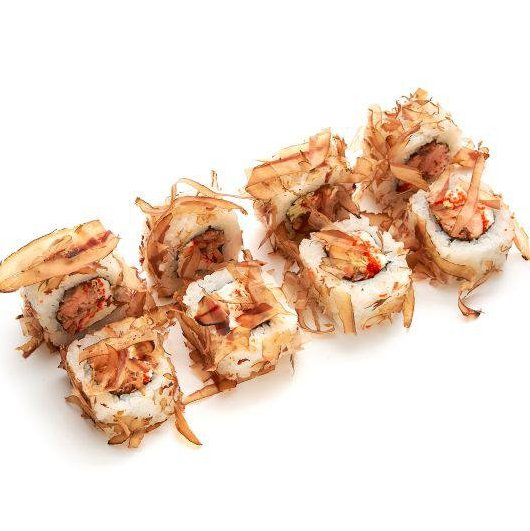 Лосось, сливочный сыр, огурец, капуста пекинская, тунец стружка.
