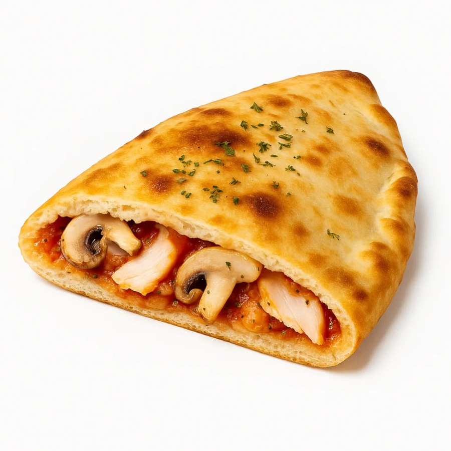 Пицца Кальцоне с копченой курицей, грибами и сыром