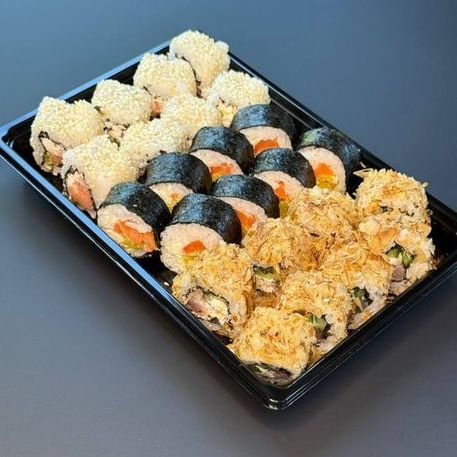 Ролл Бонито — рис, нори, сливочный сыр, копчёный тунец, свежий огурец и стружка тунца. Ролл Темпура с тунцом и такуаном — хрустящая панировка, копчёный тунец, маринованный такуан и сливочный крем-сыр под соусом терияки. К каждому сету прилагается фирменный соевый соус.
