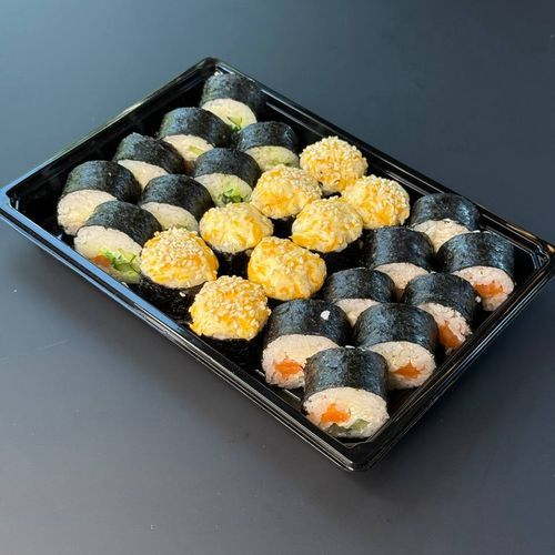 Ролл Бонито — рис, нори, сливочный сыр, копчёный тунец, свежий огурец и стружка тунца. Ролл Темпура с тунцом и такуаном — хрустящая панировка, копчёный тунец, маринованный такуан и сливочный крем-сыр под соусом терияки. К каждому сету прилагается фирменный соевый соус.