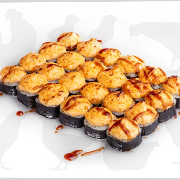 Филадельфия (лосось, сливочный сыр, рис, огурец), Окинава (рис, крем-краб, огурец, тобика оранж).