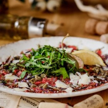 Говядина, соус Тоннато, шалот маринованный, каперсы, руккола.