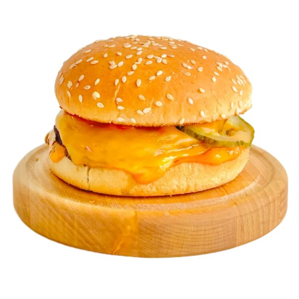Заказать Говяжья котлета, консервированные огурцы, маринованный лук, салат айсберг, сыр чеддер, соус для бургеров, соус барбекю.