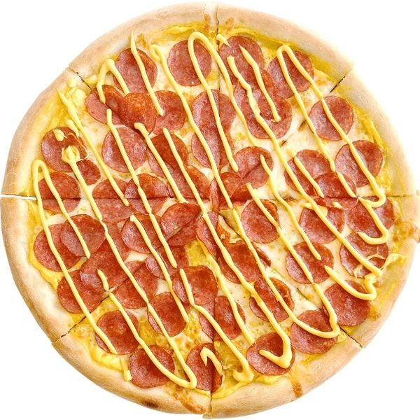 Соус Сырный, сыр моцарелла, салями, топпинг сырный, орегано.