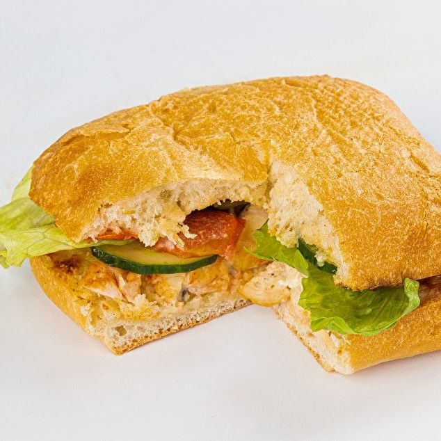 Заказать Чиабатта, курица, томат, огурец свежий, салат латук, соус чесночный.