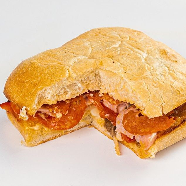 Заказать Чиабатта, соус чесночный, сыр моцарелла, пепперони, ветчина, сыр дорблю, томат.