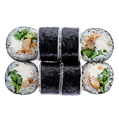 Рис, нори, окунь терияки, сыр филадельфия, огурец.