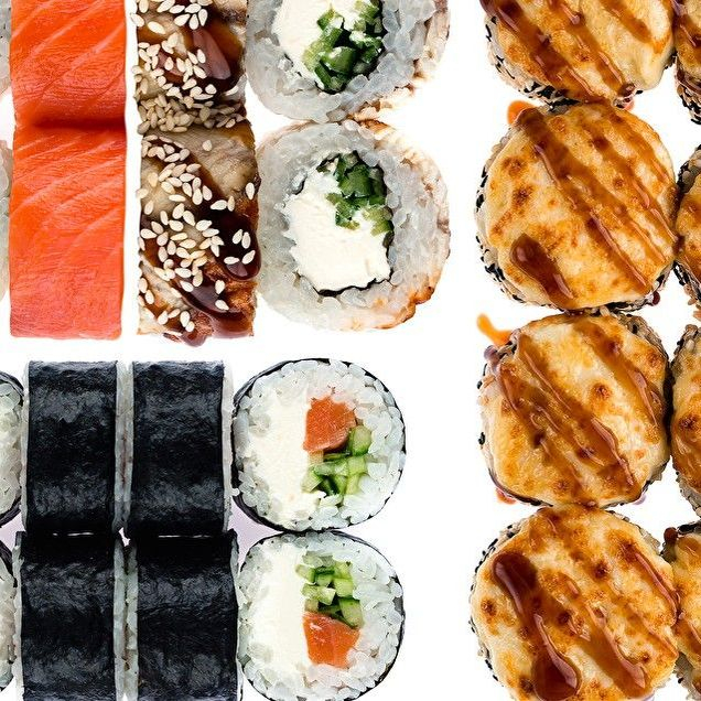 Филадельфия 1/2, Унаги 1/2, Запеченный Аляска, Лосось.