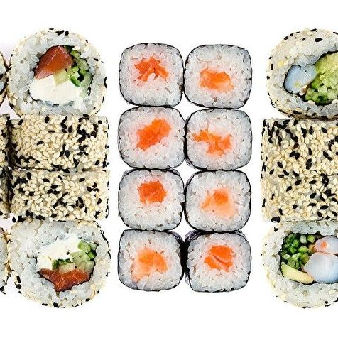 Филадельфия 1/2, Унаги 1/2, Запеченный Аляска, Лосось.
