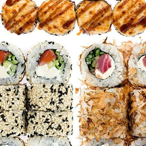 Филадельфия 50/50, Аляска 50/50, Фьюжн 50/50, Калифорния 50/50 (классический/запеченный).