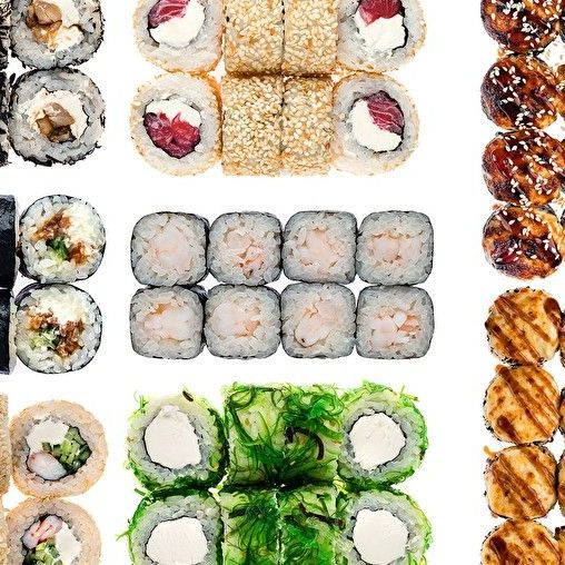 Заказать Аризона, Канзас тунец, Калифорния в кунжуте, Лосось терияки, Креветка мини, Алабама веган, Запечённый веган, Запечённый флорида.