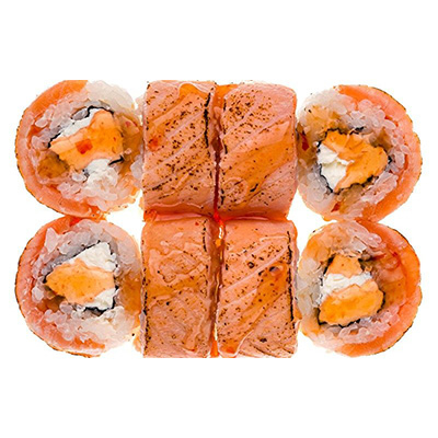 Заказать Рис, нори, лосось опаленный, сыр филадельфия, соус сладкий чили.