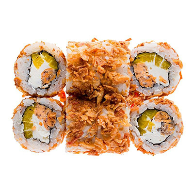 Заказать Рис, нори, мидия, сыр филадельфия, дайкон, лук карамелизированный.