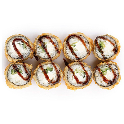 Темпура, рис, нори, цыплёнок, сыр филадельфия, огурец.