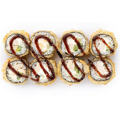 Темпура, рис, нори, цыплёнок, сыр филадельфия, огурец.