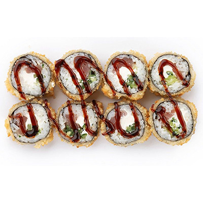 Темпура, рис, нори, тунец, сыр филадельфия, огурец.