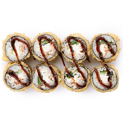 Темпура, рис, нори, сыр филадельфия, огурец.