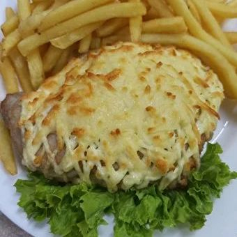 Филе куриное, шампиньоны, сыр, майонез, сметана.