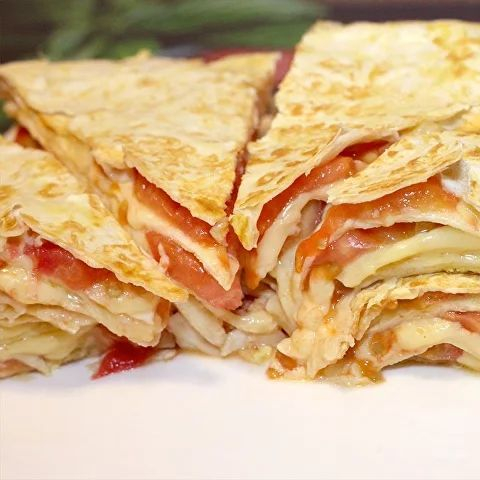 Лаваш жареный с сыром, помидором и зеленью