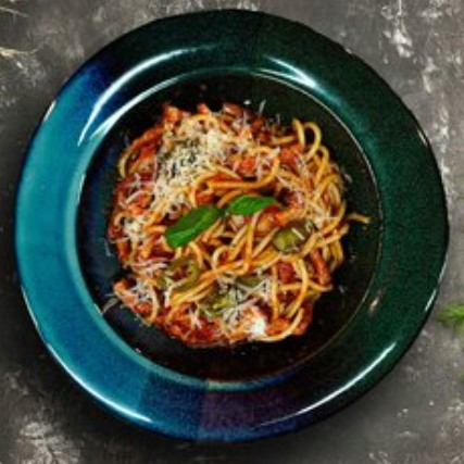 Заказать Острая паста Аматричана - спагетти в соусе из томатов в собственном соку с обжаренным беконом, халапеньо и соусом кимчи. Итальянская классика в авторском исполнении с яркой пикантностью и насыщенным вкусом.