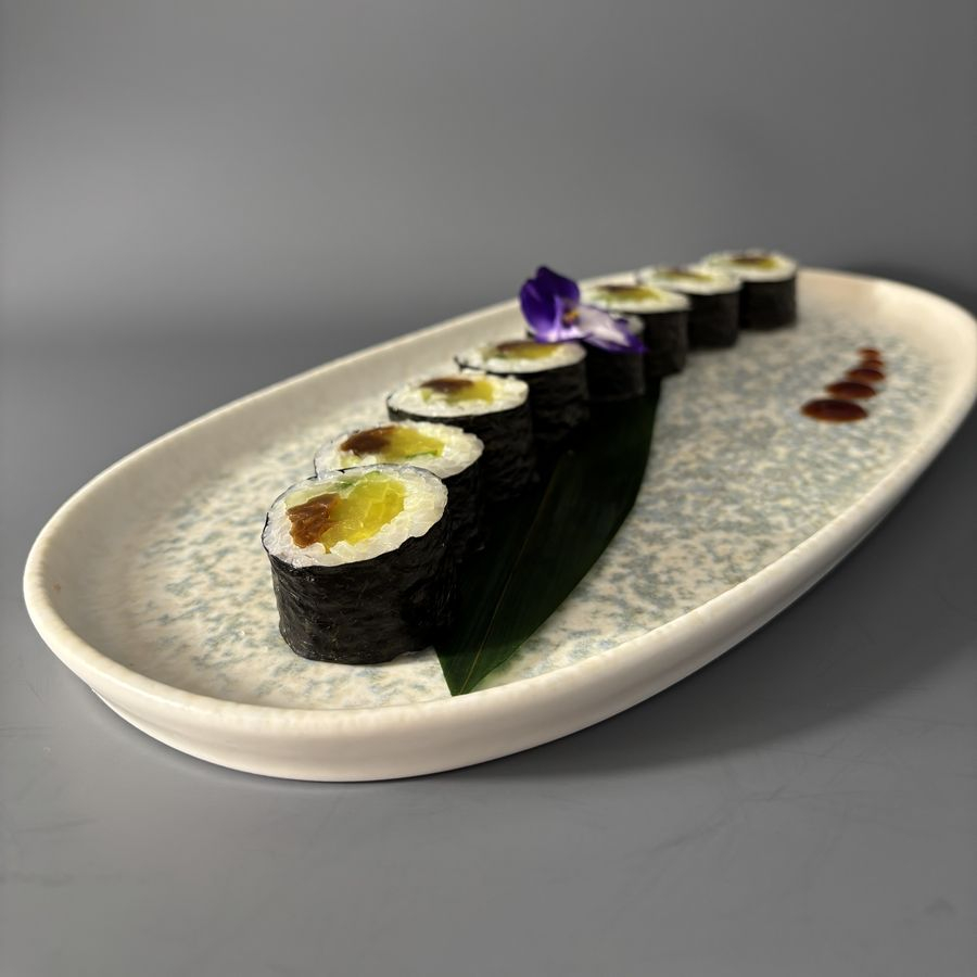 Рис, нори, огурец, маринованная тыква, такуан.