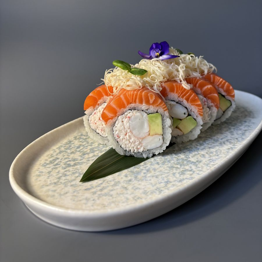 Рис, нори, лосось, креветка королевская, авокадо, снежный краб, пармезан.