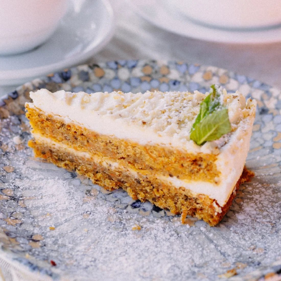 Сочный и ароматный десерт из бисквитного теста, сливочного сыра, моркови, корицы и грецкого ореха.