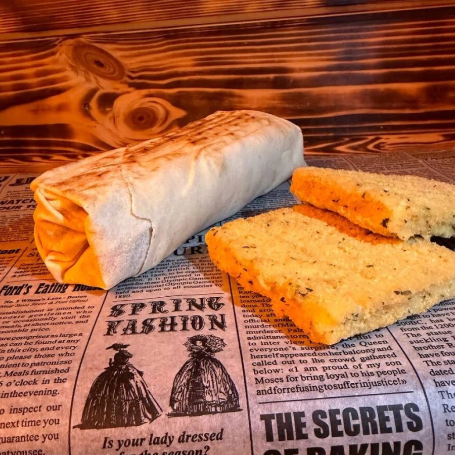 Заказать Лепешка ливанская, огурец соленый, пекинская капуста, помидор свежий, рыба в панировке, соус сладкий чили, соус сырный, сыр моцарелла, сыр чеддер.