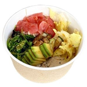 Тунец, авокадо, запечённый кабачок, водоросли чука, рис, салат, соус понзу, соус сливочно-ореховый, грейпфрутовый соус.