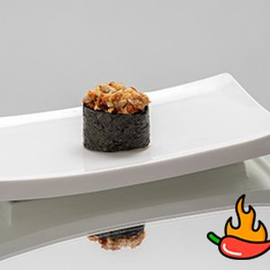 Угорь, лук зелёный, рис, нори, соус спайс.