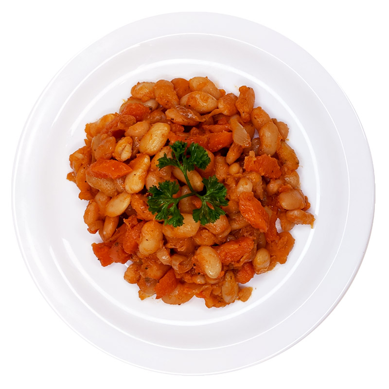 Фасоль, лук репчатый, морковь, паста томатная, масло подсолнечное.