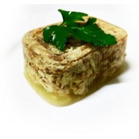 Свинина, птица, лук репчатый, морковь, чеснок, желатин, соль, специи / соус: хрен.