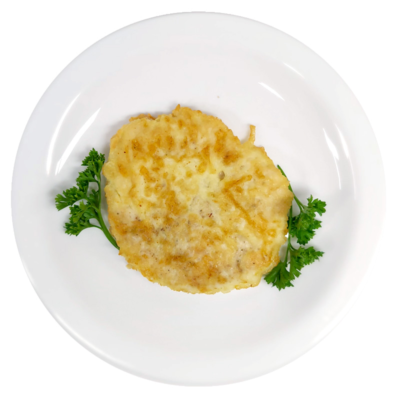 Филе птицы, морковь, лук репчатый, сыр, яйца, крахмал, мука пшеничная, соль, специи.
