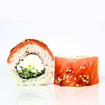 Лосось слабосоленый, сыр сливочный, огурец, икра масаго, рис, нори.