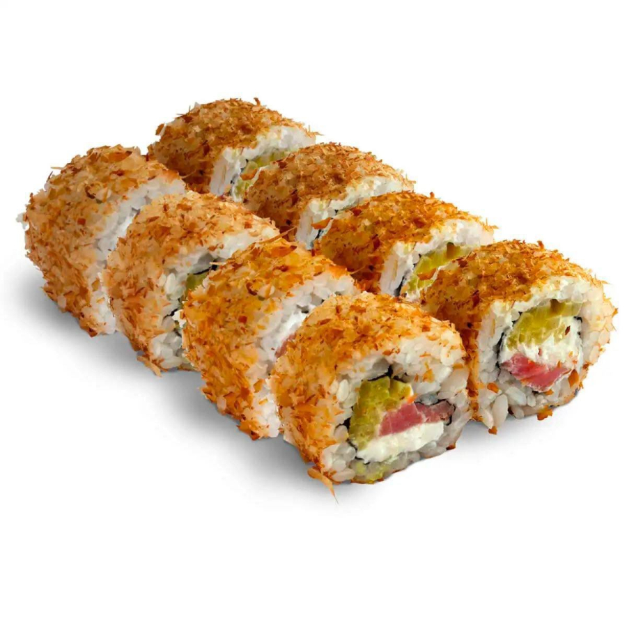 Рис, нори, тунец, такуан, огурец, сливочный сыр, икра массаго.