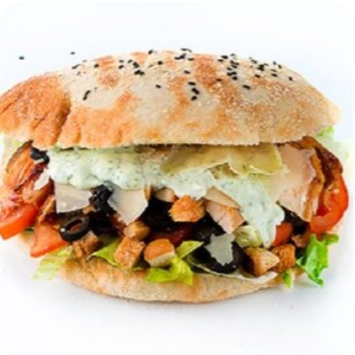 Заказать Пита, микс-салат, говядина, баранина, соус цезарь, томат, свежий огурец, сыр пармезан, маслины, красный лук, сухарики.