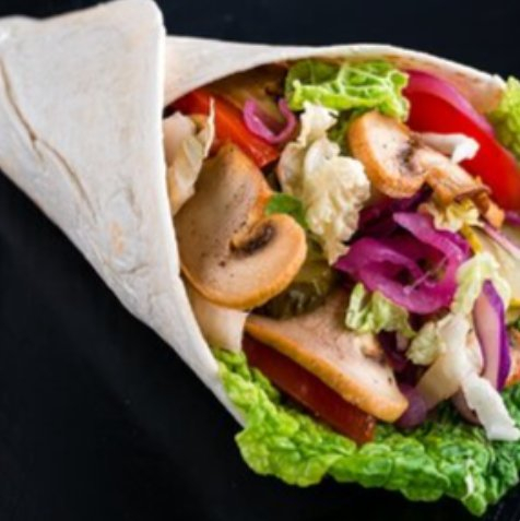 Заказать Грибы, микс-салат, огурец маринованный, лук маринованный, томат, соус кинза, соус ореховый, лаваш.