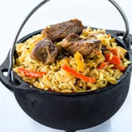 Заказать Мякоть барана, морковь желтая, морковь красная, изюм, специи, рис.