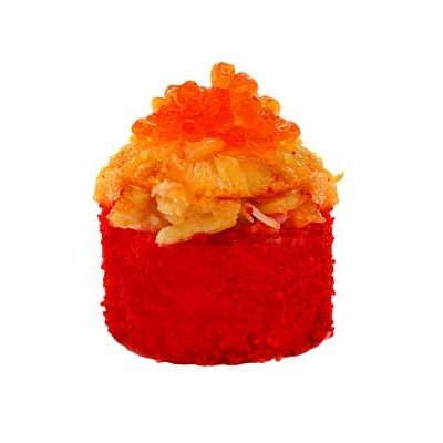 Заказать Краб, сыр, огурец, соус спайси чесночный, икра лосося, икра масаго, нори, рис, возможны элементы декора.