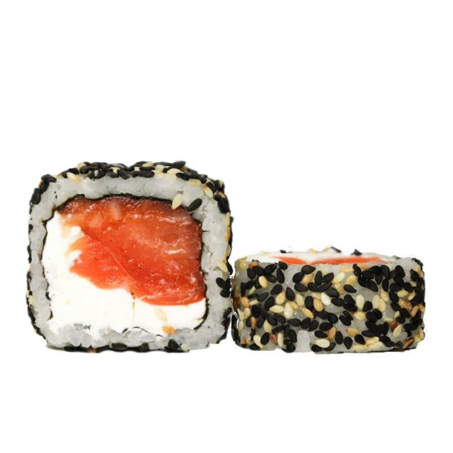 Рис, нори, лосось, творожный сыр, микс кунжута.